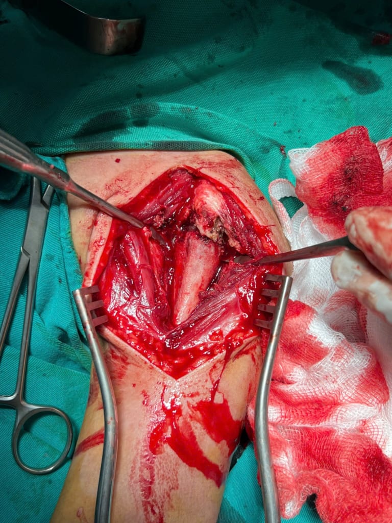 Ca phẫu thuật đã được lên kế hoạch kỹ lưỡng và dưới sự thực hiện khẩn cấp của ekip gồm BSCKI. Nguyễn Tiến Thành, BS Nguyễn Hữu Toàn, BS Mai Chí Thanh và ekip gây mê. Bệnh nhi được song song hồi sức và phẫu thuật cấp cứu mở, nạo xương viêm, đặt dẫn lưu và kháng sinh tích cực. Ca phẫu thuật kéo dài hơn 1 giờ đã kết thúc an toàn và thành công.
