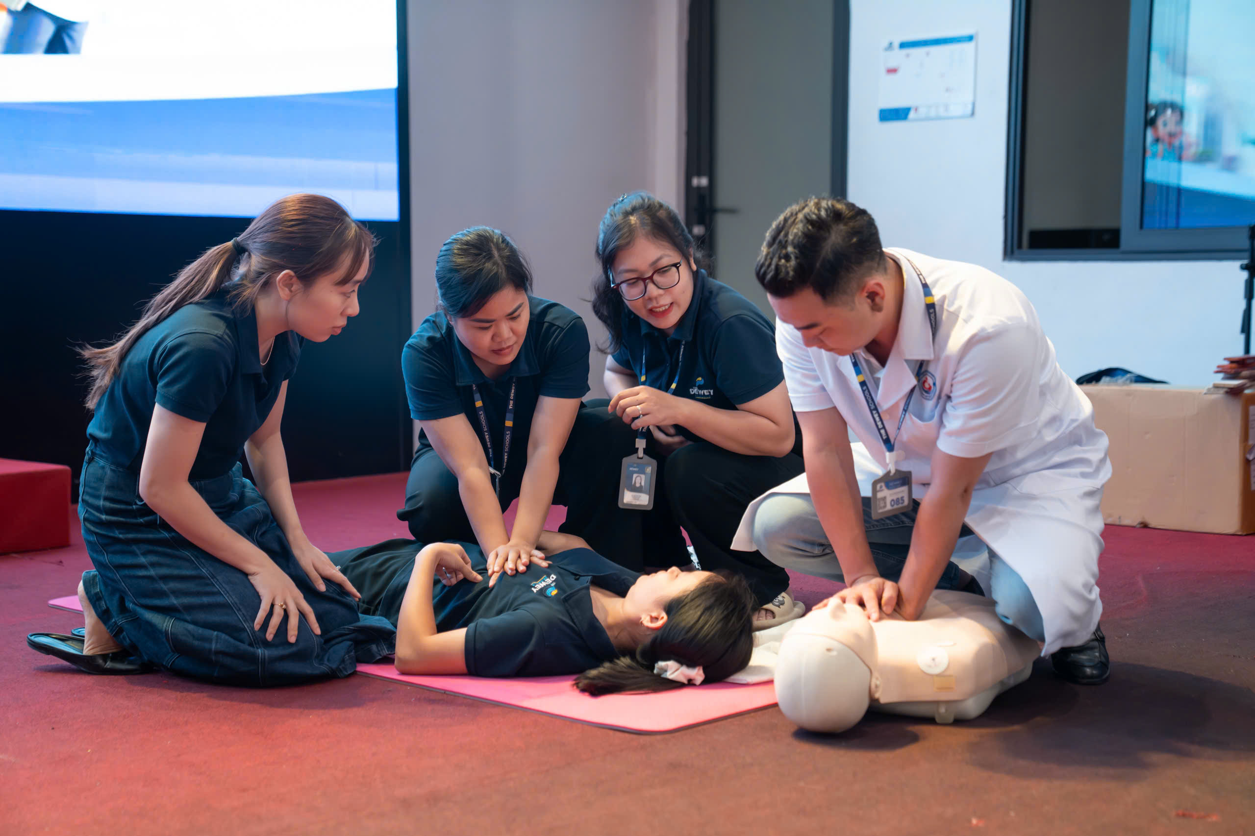 Với mong muốn nâng cao nhận thức và kỹ năng sơ cứu ban đầu cho đội ngũ cán bộ, giáo viên, nhân viên nhà trường – những người thường xuyên tiếp xúc, chăm sóc và bảo vệ học sinh, Bệnh viện Quốc tế Sản Nhi Hải Phòng đã phối hợp cùng TRƯỜNG THE DEWEY SCHOOLS – HẢI PHÒNG tổ chức chuỗi lớp đào tạo sơ cứu cơ bản.