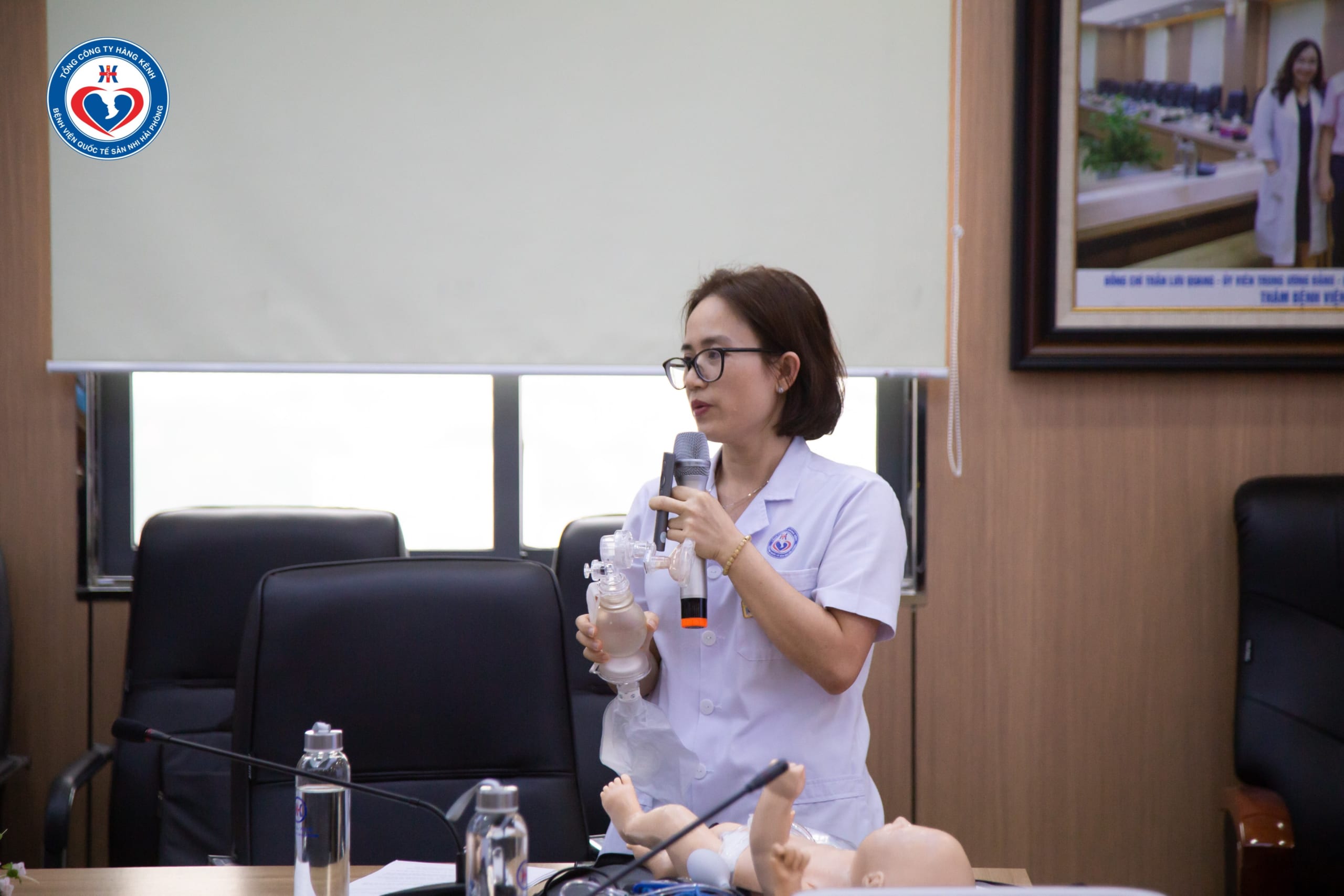 Nhằm nâng cao chất lượng trong công tác hồi sức cấp cứu, chăm sóc sơ sinh và các bệnh nhi, Bệnh viện Quốc tế Sản Nhi Hải Phòng tổ chức khóa đào tạo “Hồi sức sơ sinh trong phòng sinh” cho các bác sĩ, điều dưỡng, nữ hộ sinh và nhân viên y tế trực tiếp làm công tác chăm sóc trẻ sơ sinh tại bệnh viện. Khoá học do BSCKII. Trịnh Thị Thuần – chuyên gia với nhiều năm kinh nghiệm trong lĩnh vực Hồi sức sơ sinh trực tiếp giảng dạy.