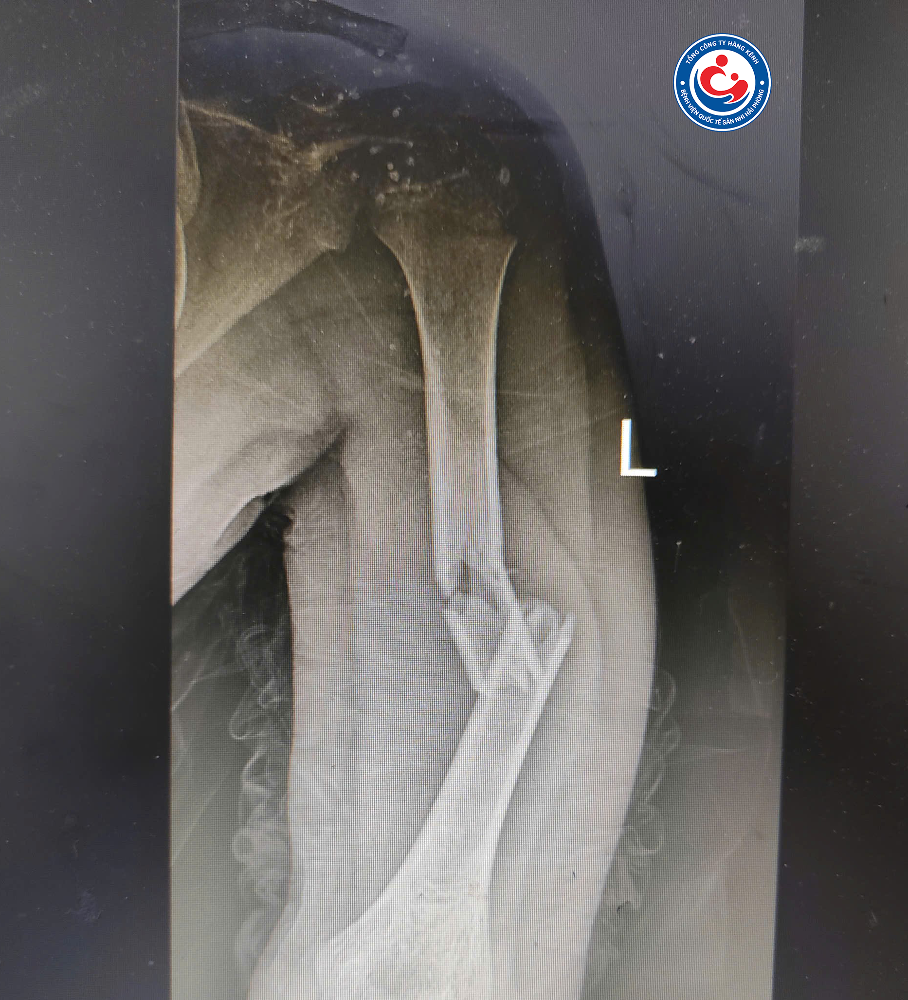 - Xương cánh tay trái gãy đôi trên X quang
