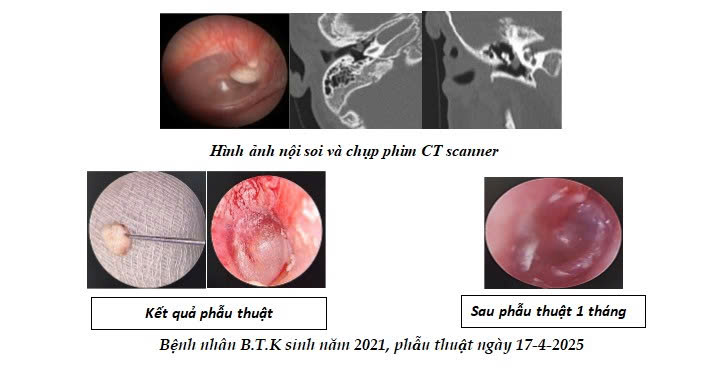 ⭐️ ?????̂́? ??́?: Khi trẻ Khám – Nội soi Tai mũi họng phát hiện khối bất thường màu trắng ngà trong tai giữa, cần đề cao cảnh giác với bệnh lý cholesteatoma bẩm sinh, cần được chẩn đoán xác định sớm ở những cơ sở y tế có điều kiện, đồng thời tiến hành phẫu thuật sớm để tránh những nguy cơ biến chứng nguy hiểm.