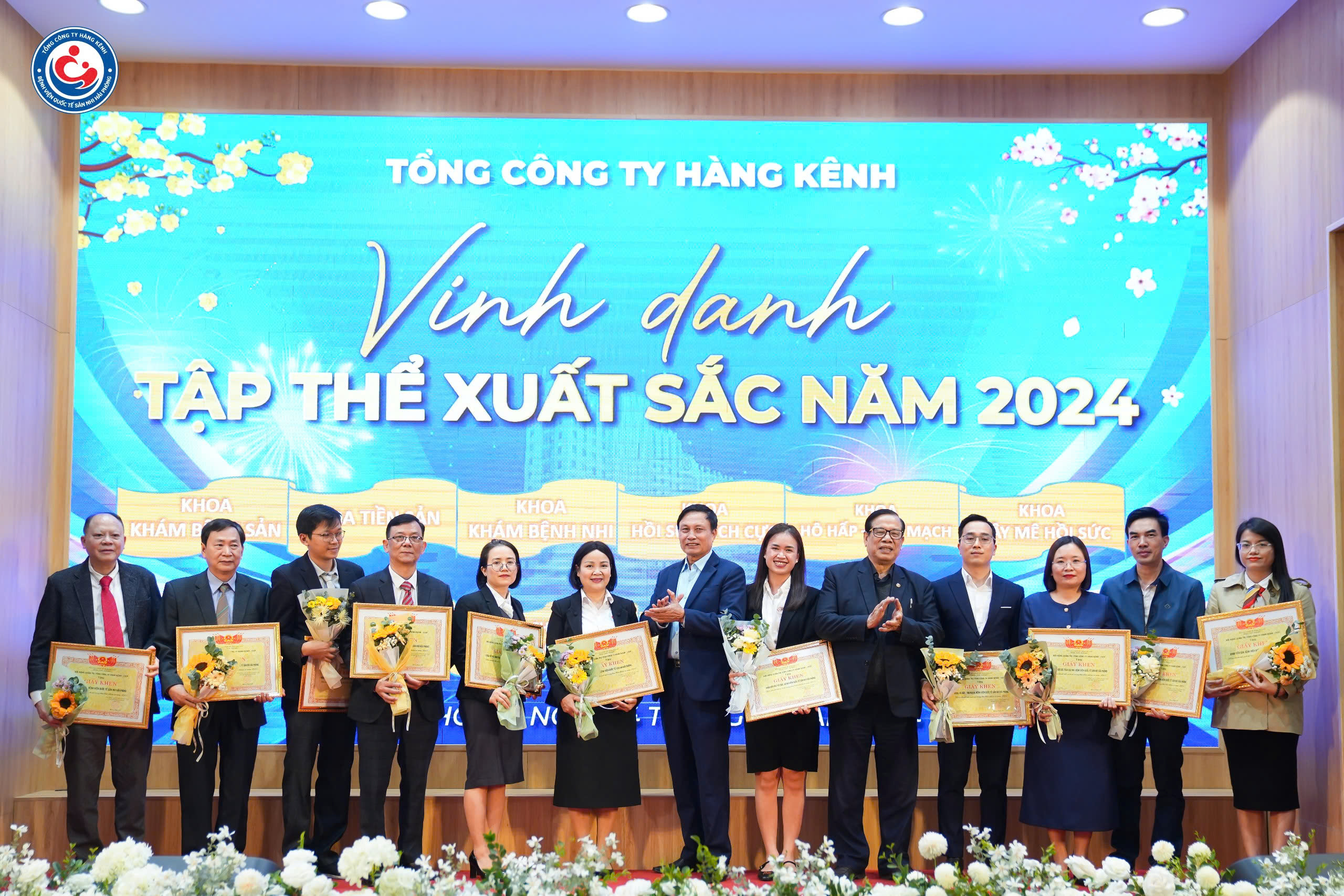 Để đạt được thành công, sự đóng góp và cống hiến của từng cá nhân, tập thể là vô cùng quan trọng. Tại buổi lễ, 12 tập thể và 19 cá nhân có thành tích xuất sắc năm 2024 đã được Ban lãnh đạo Tổng công ty Hàng Kênh vinh danh. Về phía Bệnh viện, 12 tập thể và 82 cá nhân có thành tích xuất sắc năm 2024 đã được Ban lãnh đạo Bệnh viện vinh danh và trao tặng kỉ niệm chương.