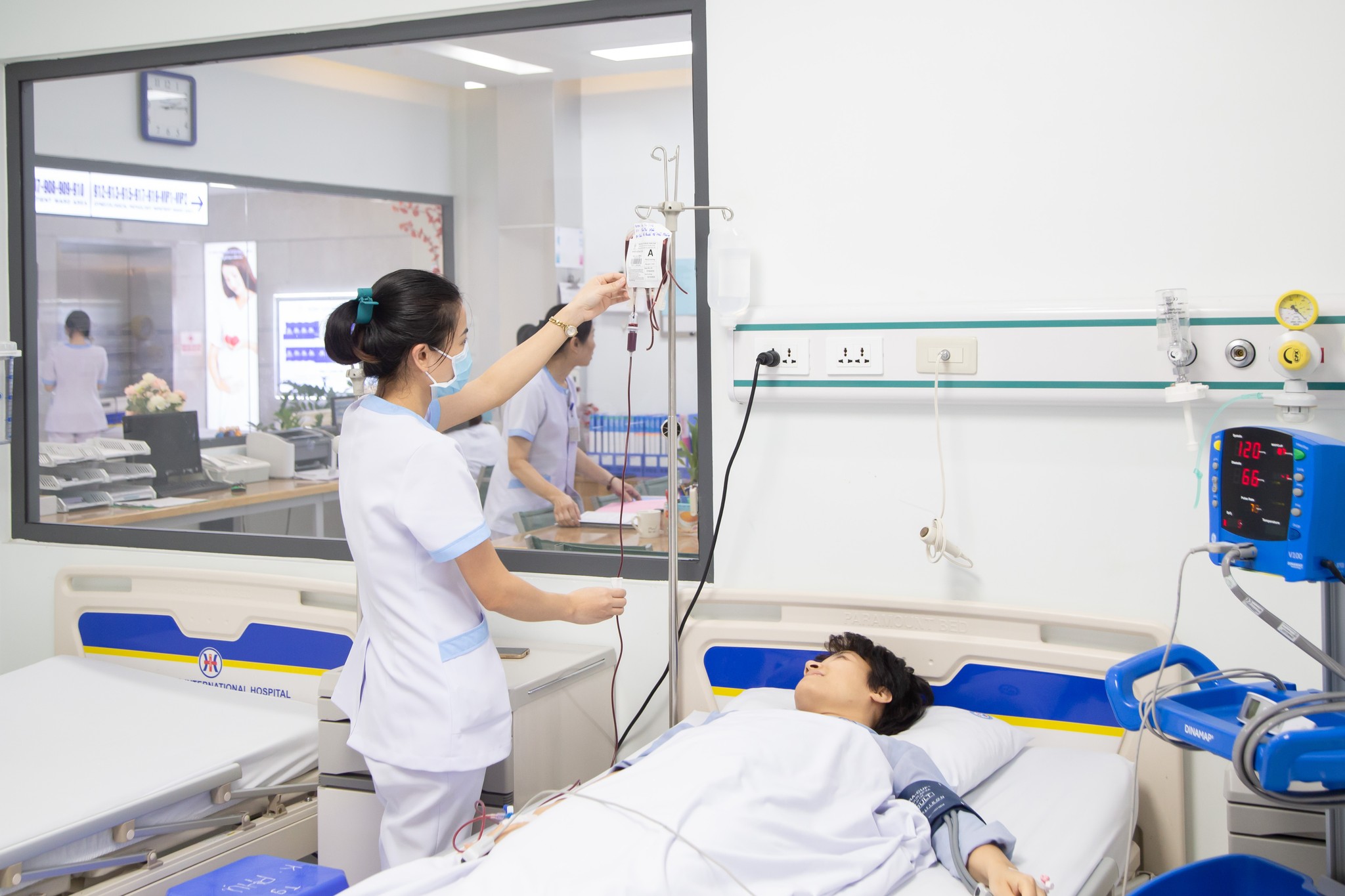 Sau khi máu được vận chuyển về Bệnh viện Quốc tế Sản Nhi Hải Phòng, PGS.TS Nguyễn Văn Học – Trưởng khoa Phụ lập tức chỉ định truyền máu ngay cho bệnh nhân H. Tuy nhiên, sau khi truyền máu, diễn biến sức khoẻ của bệnh nhân xấu đi vì có dấu hiệu chảy máu trong. PGS.TS Nguyễn Văn Học đã hội chẩn với lãnh đạo Bệnh viện và quyết định phẫu thuật ngay cho bệnh nhân H nếu không sẽ không còn cơ hội phẫu thuật. Qua đánh giá tình trạng sức khoẻ của bệnh nhân H, cần cung cấp ít nhất 04 đơn vị máu để đảm bảo cho ca phẫu thuật diễn ra an toàn. Nhưng trên thực tế Bệnh viện chỉ đang có sẵn 01 đơn vị máu phù hợp. Trước tình thế cấp bách, PGS.TS Nguyễn Văn Học đã trực tiếp giải thích và nhận được sự đồng thuận của gia đình bệnh nhân cho phép phẫu thuật.