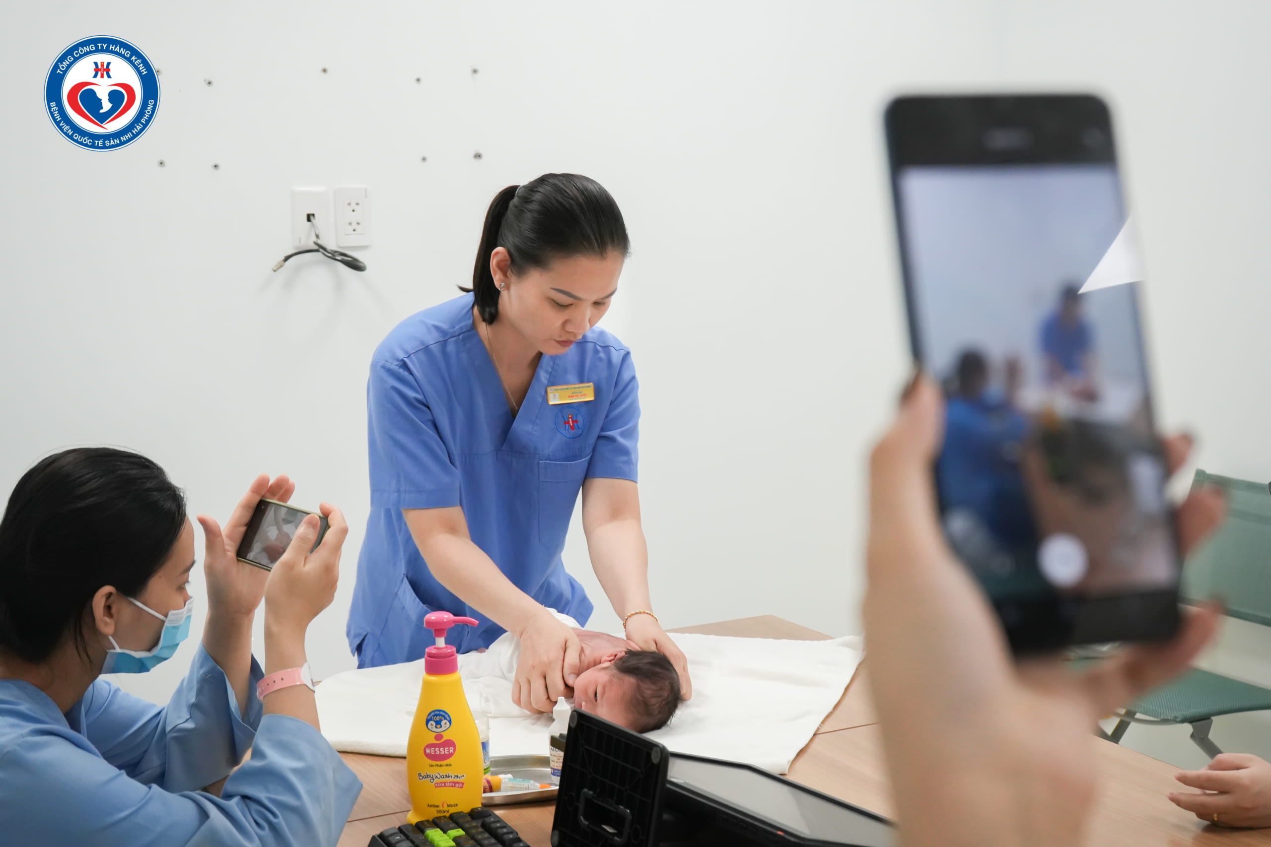 – Hướng dẫn kỹ năng tắm bé, vệ sinh rốn, mắt, tai và massage trên làn da mỏng manh của bé.
