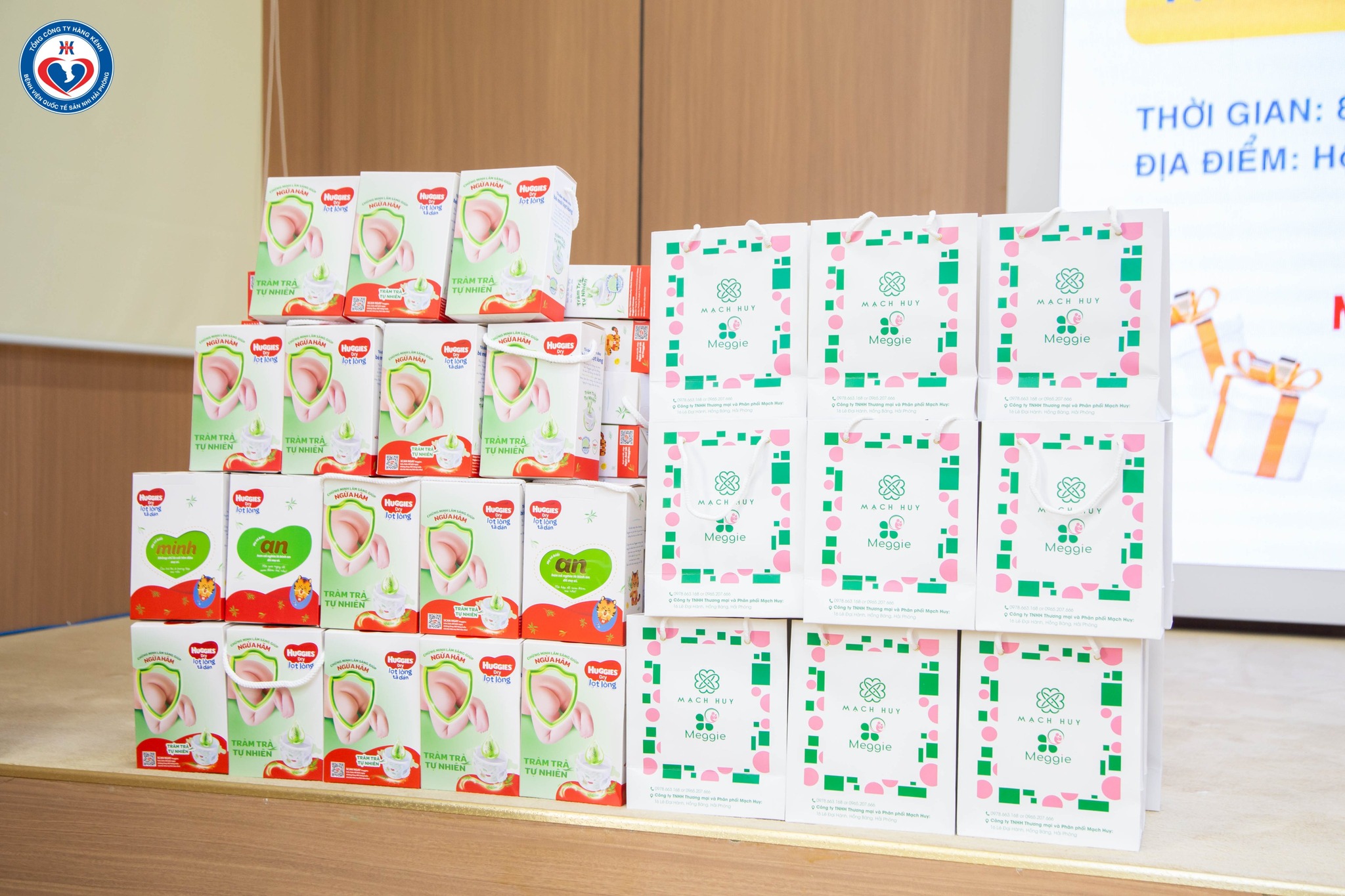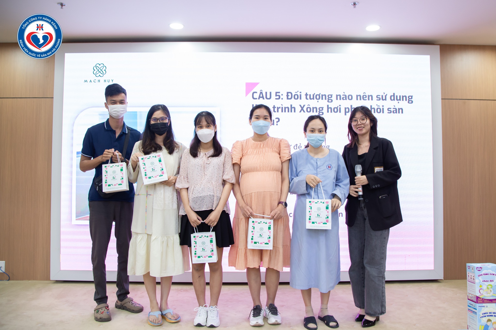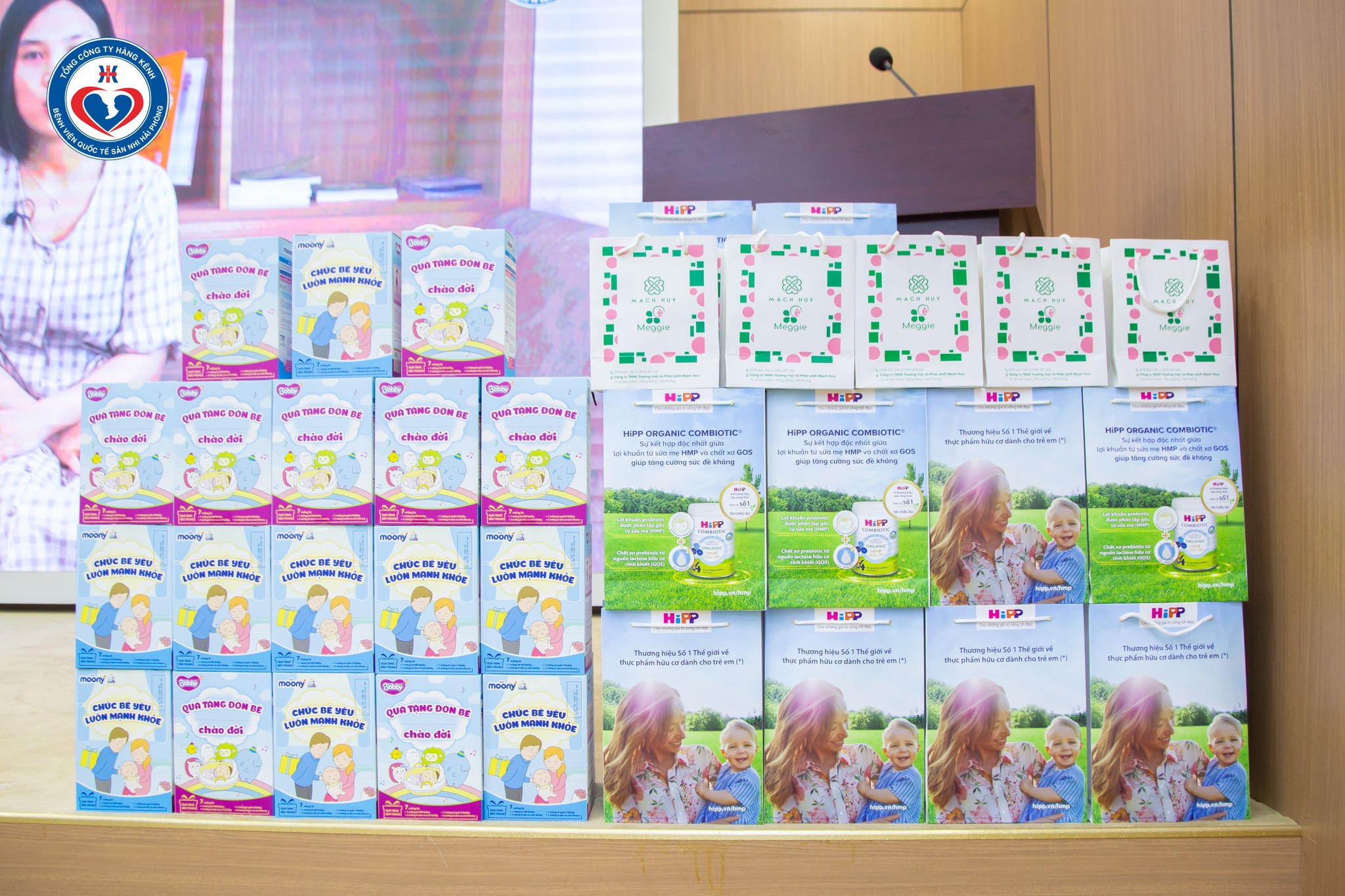 Ngoài ra, khi tham dự hội thảo, Sản phụ được nhận rất nhiều phần quà giá trị từ nhà tài trợ Mạch Huy, HIPP, Bỉm HUGGIES, bỉm BOBBY.